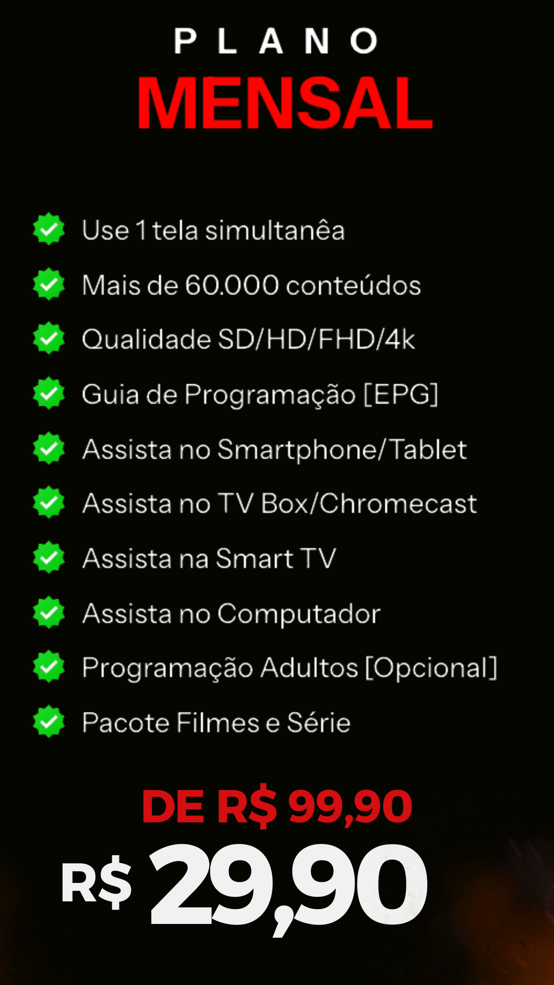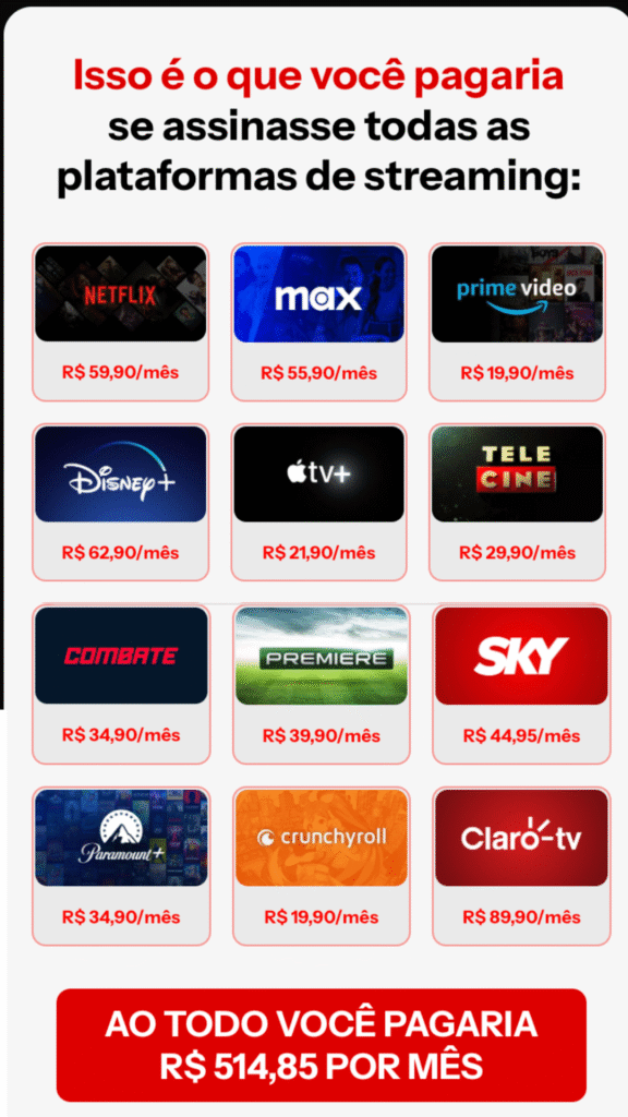 📺 Compatível com todos os dispositivos – TV, celular, tablet ou computador.